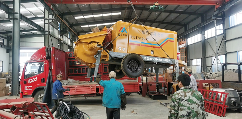 工作原理:當(dāng)液壓系統(tǒng)壓力油進(jìn)入一主油缸時(shí),活塞桿伸出,同時(shí)通過(guò)密封回路連通管的壓力油使另一活塞桿回縮。與主油缸活塞桿相連的混凝土輸送活塞回縮時(shí)在輸送缸內(nèi)產(chǎn)生自吸作用,料斗中的混凝土在大氣壓力作用和攪拌葉片的助推作用下通過(guò)滑閥吸入口被吸入輸送缸。同時(shí),另一主油缸在油壓的作用下,推動(dòng)主油缸的活塞桿伸出并同時(shí)推動(dòng)混凝土活塞壓出輸送缸中的混凝土,通過(guò)滑閥輸送口Y字管進(jìn)入混凝土輸送管。動(dòng)作完成后,系統(tǒng)自動(dòng)換向使壓力油進(jìn)入另一主油缸,完成另一次不同輸送缸的吸、送行程。如此反復(fù),料斗里的混凝土就被吸入和壓送出輸送缸,通過(guò)Y型管和出口連接的管道到達(dá)作業(yè)點(diǎn),完成泵送作業(yè)。