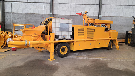 工作原理:當液壓系統壓力油進入一主油缸時,活塞桿伸出,同時通過密封回路連通管的壓力油使另一活塞桿回縮。與主油缸活塞桿相連的混凝土輸送活塞回縮時在輸送缸內產生自吸作用,料斗中的混凝土在大氣壓力作用和攪拌葉片的助推作用下通過滑閥吸入口被吸入輸送缸。同時,另一主油缸在油壓的作用下,推動主油缸的活塞桿伸出并同時推動混凝土活塞壓出輸送缸中的混凝土,通過滑閥輸送口Y字管進入混凝土輸送管。動作完成后,系統自動換向使壓力油進入另一主油缸,完成另一次不同輸送缸的吸、送行程。如此反復,料斗里的混凝土就被吸入和壓送出輸送缸,通過Y型管和出口連接的管道到達作業(yè)點,完成泵送作業(yè)。