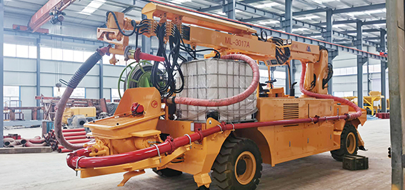 3、同步速凝劑添加采用進(jìn)口軟管泵,液壓馬達(dá)驅(qū)動(dòng),電比例流量閥調(diào)節(jié)轉(zhuǎn)速以達(dá)到調(diào)節(jié)流量的目的,液晶顯示和觸屏設(shè)置速凝劑添加比例,且在屏幕和器上均可隨時(shí)修改設(shè)置,速凝劑的添加量緊隨砼的泵送量同步變化而保持添加比例按設(shè)定值運(yùn)行,這些均由可編程控制器控制。由此可實(shí)現(xiàn)對(duì)速凝劑添加量的控制,以達(dá)到效果,回彈和節(jié)約速凝劑的目的。機(jī)器上配有容積為1.0m³的耐腐蝕塑料材質(zhì)的速凝劑容器,速凝劑軟管泵也可從外部容器中抽吸速凝劑,根據(jù)實(shí)際情況可方便地進(jìn)行切換。